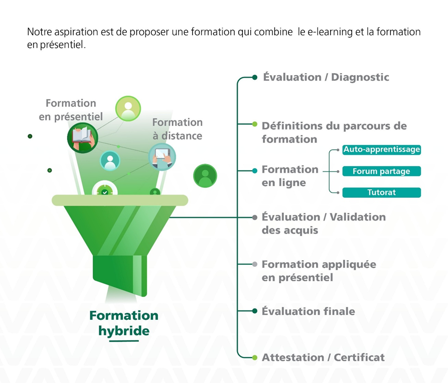 À l’IFMA, la formation hybride repose sur une approche progressive et flexible du parcours apprenant, alliant diagnostic, accompagnement en ligne et mise en pratique, pour répondre aux besoins individuels tout en maintenant une exigence pédagogique élevée, tel que décrit :